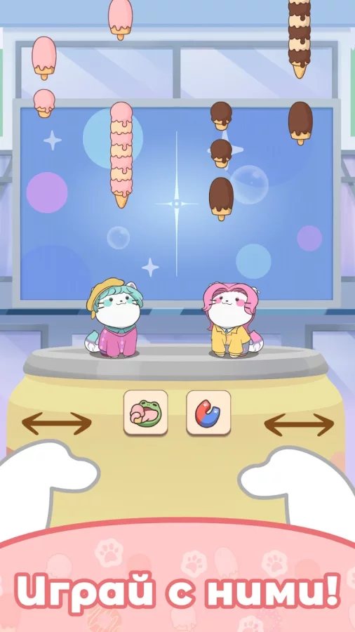 Помимо ритма, в Duet Cats есть коллекционная часть. Можно открывать новых котов, менять их внешний вид и постепенно улучшать небольшую «домашнюю площадку». Эти элементы не влияют на сложность, но добавляют интерес к прогрессу.